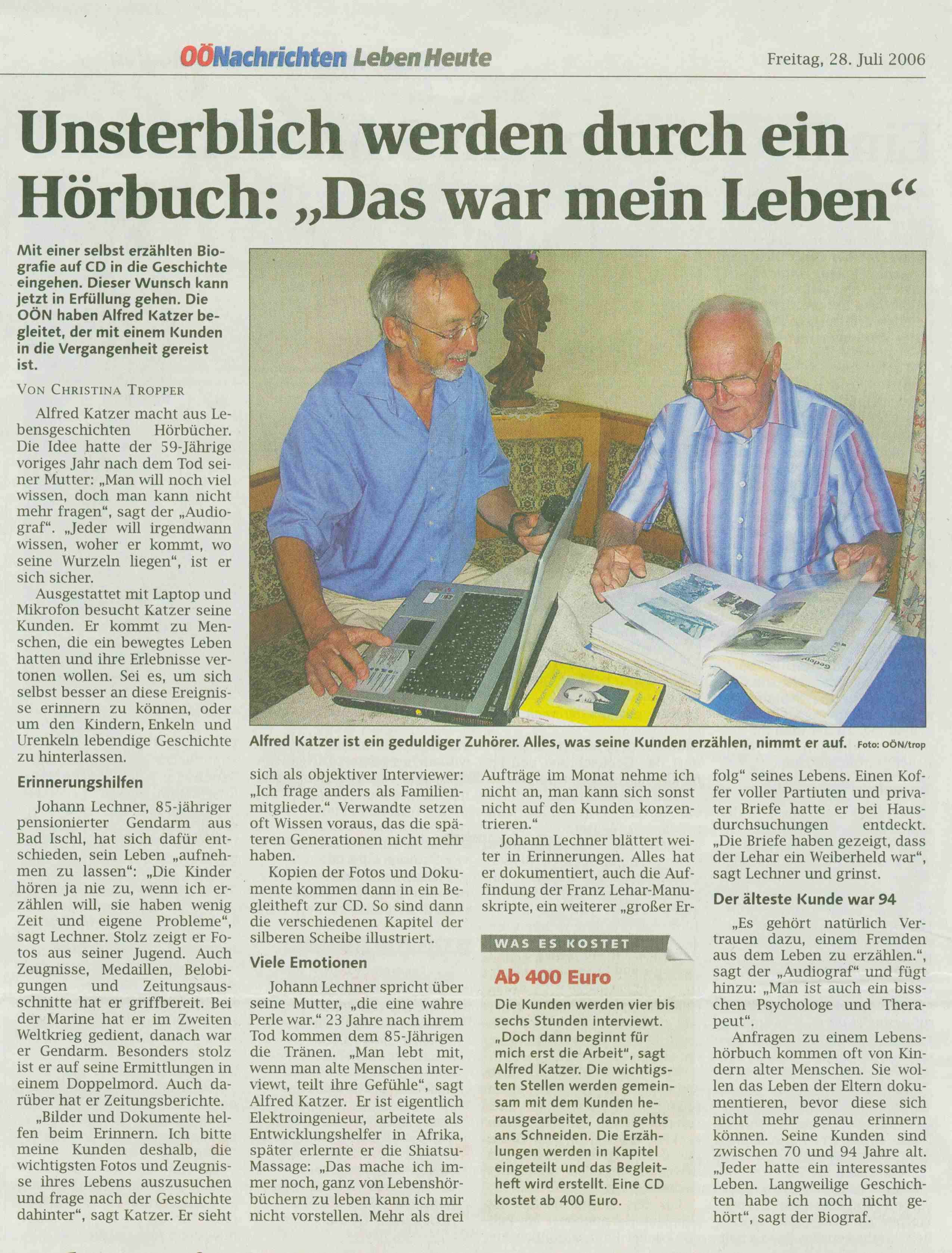 Meine Idee war damals, Fotobücher mit Interviews auf CD (Dauer bis zu 70 Minuten) zu kreieren. Ich war überzeugt, solch ein Lebens-Hörbuch ist wertvoll für nachfolgende Generationen.